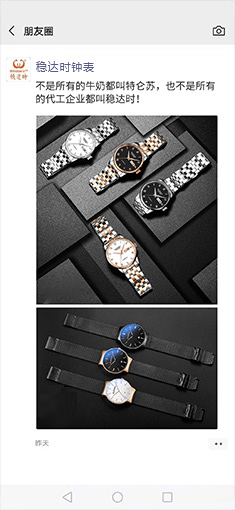 不同材質,不同工藝,不同質量的原材,價格最后都不一樣;穩達時每只表精細選材,原裝進口機芯品質保證,先打樣后做貨、保障產品品質;我們始終堅信一分錢一分貨,從源頭把控產高品質,確保打磨出來的每一只表都是精品。